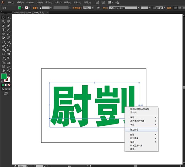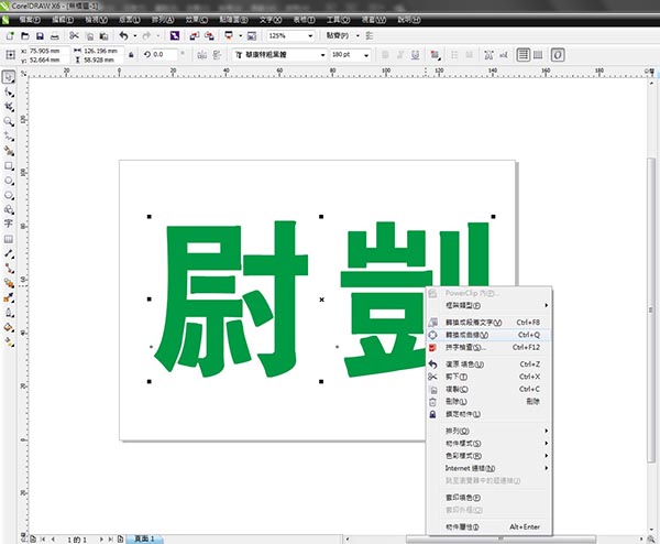 點選文字物件後按〝右鍵〞點選轉換成曲線。