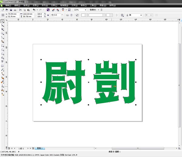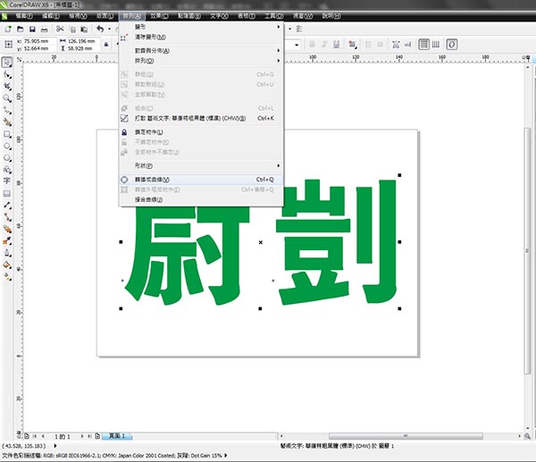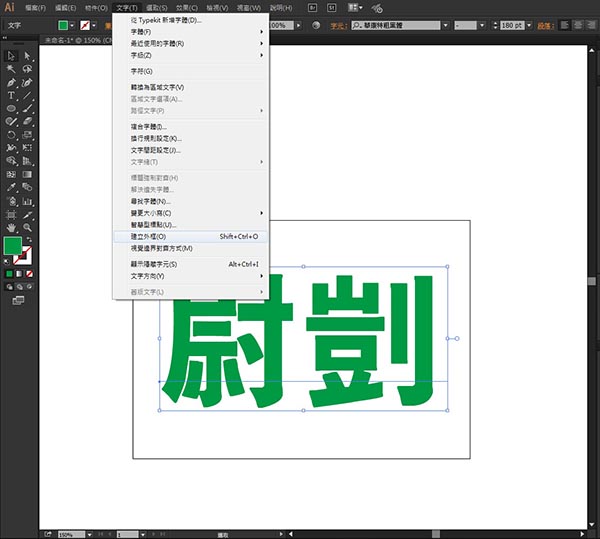 點選文字物件後按〝Ctrl+Shift+O〞即可成功轉成外框線。