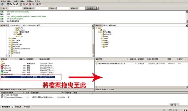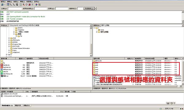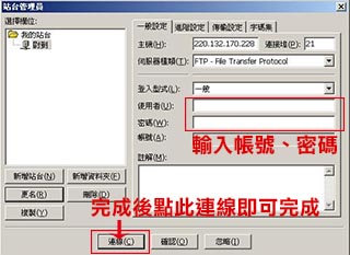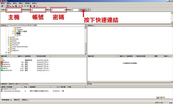 開啟FTP後輸入主機帳號密碼後按下快速連線即可使用。