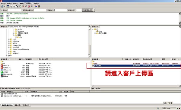 當連線完成後點擊伺服內的〝客戶上傳區〞資料夾